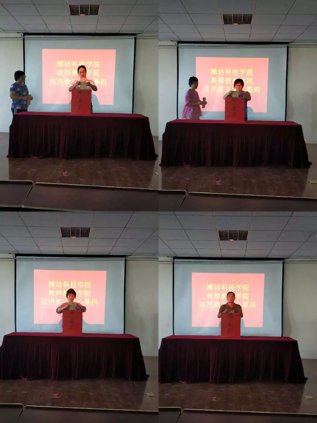 洪灾无情人有情,大灾面前有大爱!今日我市遭遇百年不遇特大灾 ,我市下游地区受灾,8月23日上午,在学院领导和组织下,我院全体干部教职工开展“抗洪救灾、爱心募捐”活动。我院教职工慷慨解囊,为受灾群众伸出援助之手,奉献爱心,帮助灾区恢复生产,重建家园。