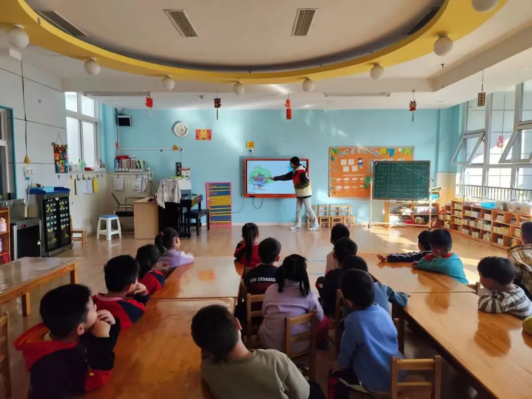 志愿者们为小朋友们讲解了中国的历史,从古代到今天,从大山到大河,从古代四大发明——火药、造纸术、印刷术、指南针,到如今的高铁、火车、飞机,从经济到文化。孩子们深深感叹国家的繁荣与富强,一颗颗小小的红色的种子,慢慢地在孩子们心里萌发。可爱活泼的孩子们积极回答着志愿者的问题,小手拉起大手,传递红色故事。