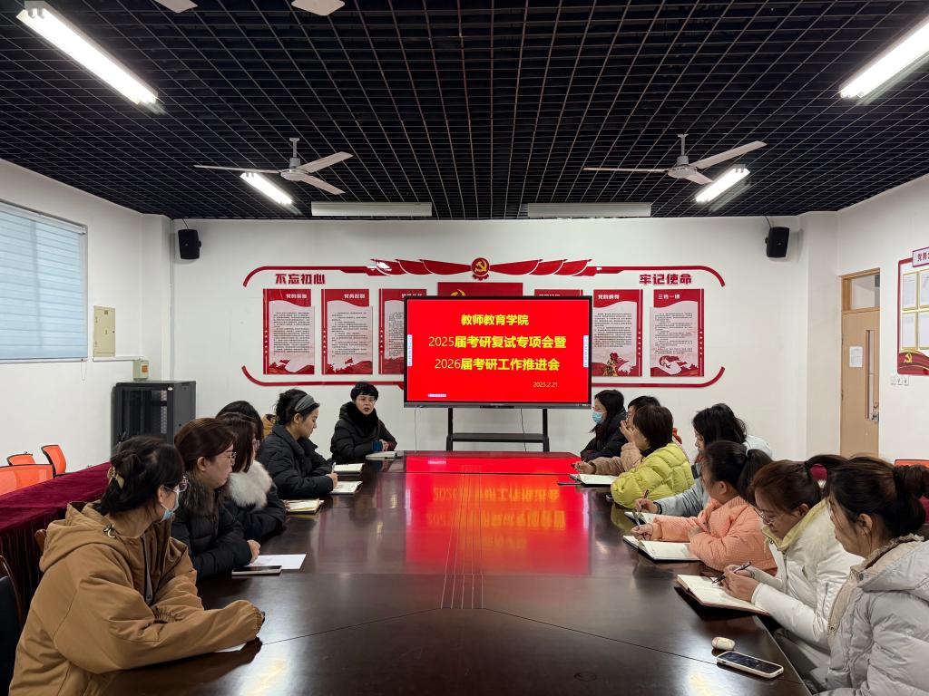 本次会议的召开,标志着教师教育学院2025届考研复试工作和2026届考研推进工作全面启动。学院将以此次会议为契机,进一步统一思想、提高认识、明确目标、落实责任,全力以赴做好考研工作,为提升学院人才培养质量、促进学生全面发展做出新的更大贡献。