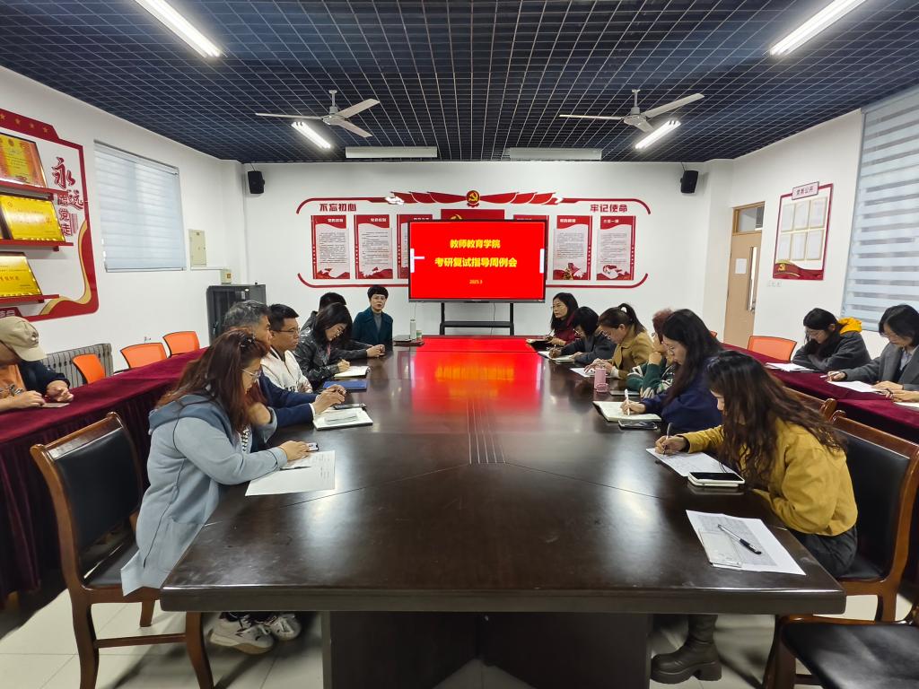 为扎实推进2025届毕业生考研复试指导工作,3月24日,教师教育学院组织召开了2025届考研复试指导周例会,本次会议由院长唐艳平主持,教学院长黄登翠、全体指导老师及毕业班辅导员等一同参会,共同为考研学子的复试之路出谋划策。