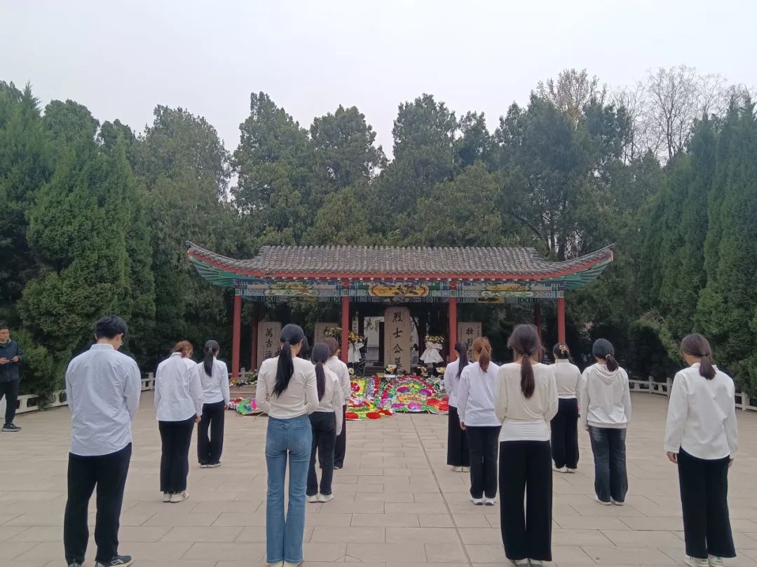 到达烈士陵园后,参天的翠柏静静伫立,似在为烈士们站岗。全体成员整齐列队,神情肃穆,稳步走向纪念碑,向烈士们默哀。一时间,园内万籁俱寂,唯有微风拂过,带来一丝缅怀的气息。随后默哀结束,同学们依次敬献鲜花,擦拭烈士纪念碑。