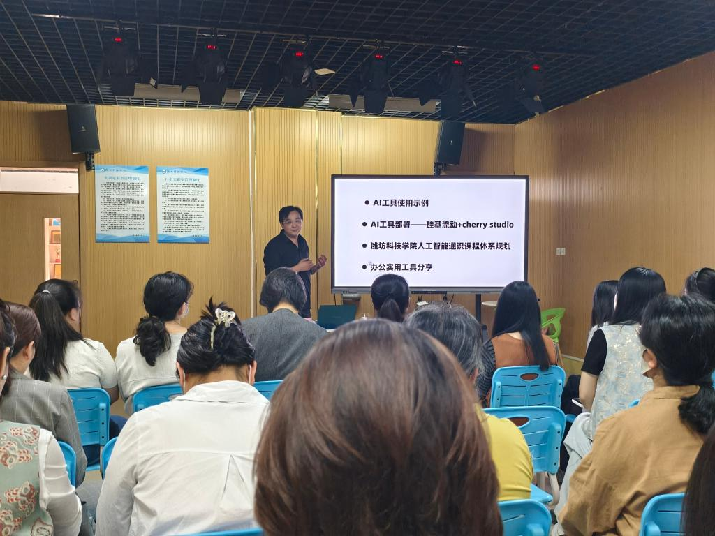 会上,张伟重点阐释人工智能教育的重要性,现场演示AI工具应用及部署方法,并结合毕业设计流程甘特图展示AI技术在教学管理中的实践应用。此外,会议对学校人工智能通识课程体系规划相关文件进行解读,明确至2027年要实现传统专业转型升级、建设课程体系、提升师生数字素养等目标。最后,他分享了多款AI办公工具,帮助教师提升工作效率。与会教师都表示将积极探索AI技术在教学中的应用,助力培养适应社会发展的高素质人才。