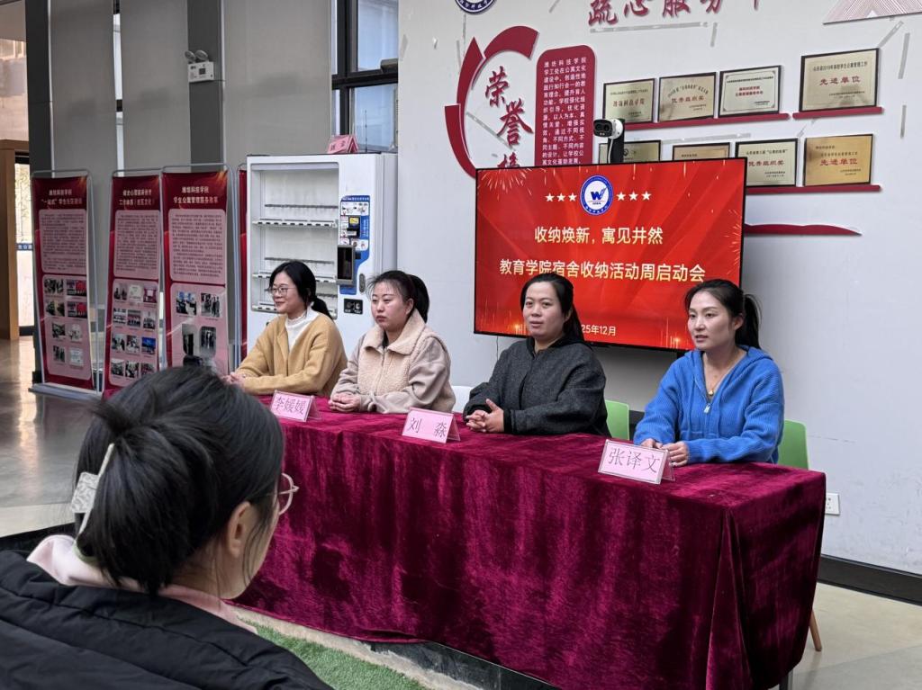 为引导学生营造整洁有序、富有美感的宿舍环境,近日,教育学院特开展大学生公寓收纳培训系列活动,涵盖启动仪式、入舍帮扶、角落改造、闲置交换四大板块,让同学们在实践中解锁生活美学。