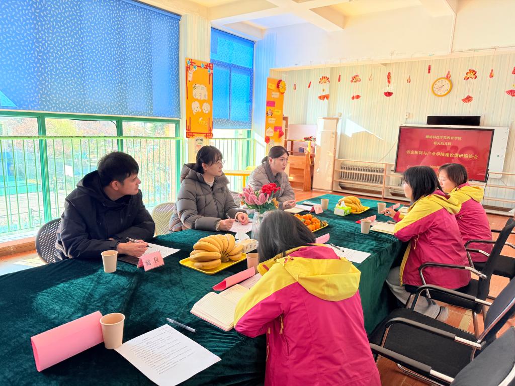 为精准对接学前教育行业发展趋势与人才需求,进一步优化学前教育专业人才培养体系,12月5日,教育学院艺术教学中心副主任盛文娟、学前教育专科系主任冀哲率专业教师团队前往潍阳学校附属幼儿园、潍城区仓南路幼儿园、潍城区永安路幼儿园、潍坊市春天幼儿园四所幼儿园开展访企拓岗与产业学院建设专题调研。幼儿园园长、业务园长等核心管理人员以及教育学院在园工作的优秀毕业生代表共同参与接待并座谈交流。