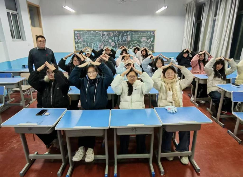 学院组织各班级开展“假如我是TA”反歧视情景模拟讨论会,学生通过角色扮演,亲身体验艾滋病感染者可能面临的就医、求职、社交等困境,在沉浸式讨论中学会换位思考,深刻理解消除歧视、平等尊重的重要性。在知识普及方面,学院安全专员孙辉老师牵头组织了防艾知识竞赛。竞赛内容涵盖传播途径、预防措施、政策权益等,以赛促学,帮助学生厘清认知误区,强化科学防艾意识。竞赛后,孙辉还就常见错误进行了现场讲解与答疑。此外,活动创新宣传形式,融入艺术与温情表达。学院开展了“‘爱无艾’手语操学习”,学生在孙辉的指导下,以指尖舞蹈传递关怀与支持,让防艾宣传超越言语,更具感染力。同时,举办防艾主题手抄报创作活动,鼓励学生将红丝带、科普漫画、暖心祝福等元素融入创作,在艺术实践中深化对防艾知识的理解与传播。