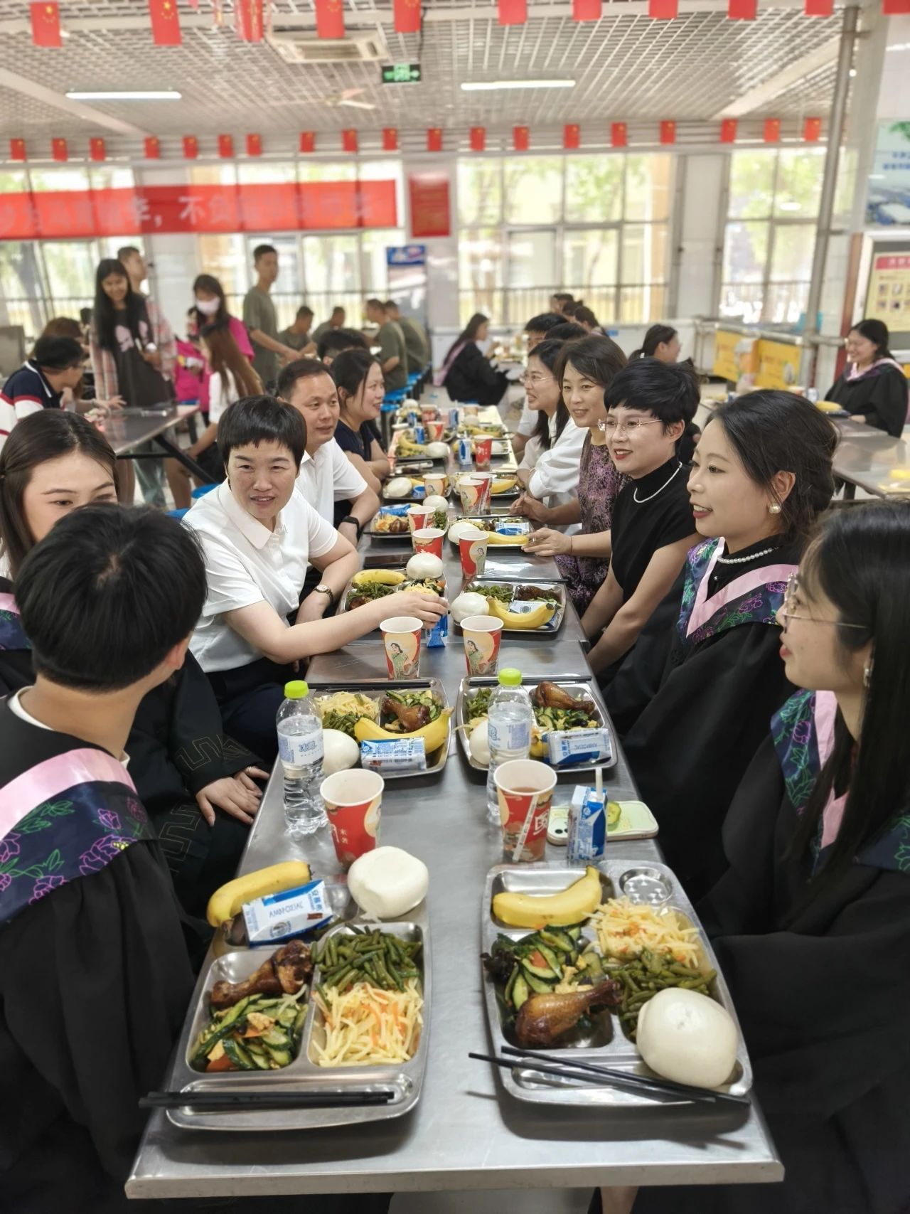 12日中午,毕业生齐聚天泰一楼。美食香气弥漫,为毕业氛围添上温馨注脚。潍坊科技学院党委委员董金萍、教师教育学院院长唐艳平、党委书记韩中等领导老师与毕业生们亲切共进午餐,席间不时询问同学们的就业去向和未来规划,分享人生经验,叮嘱毕业生们常回母校看看。动人歌声悄然响起,音符流淌,似在用旋律诉说青春中欢笑与不舍,那些一起奋斗、相伴成长的时光,随歌声轻漾。