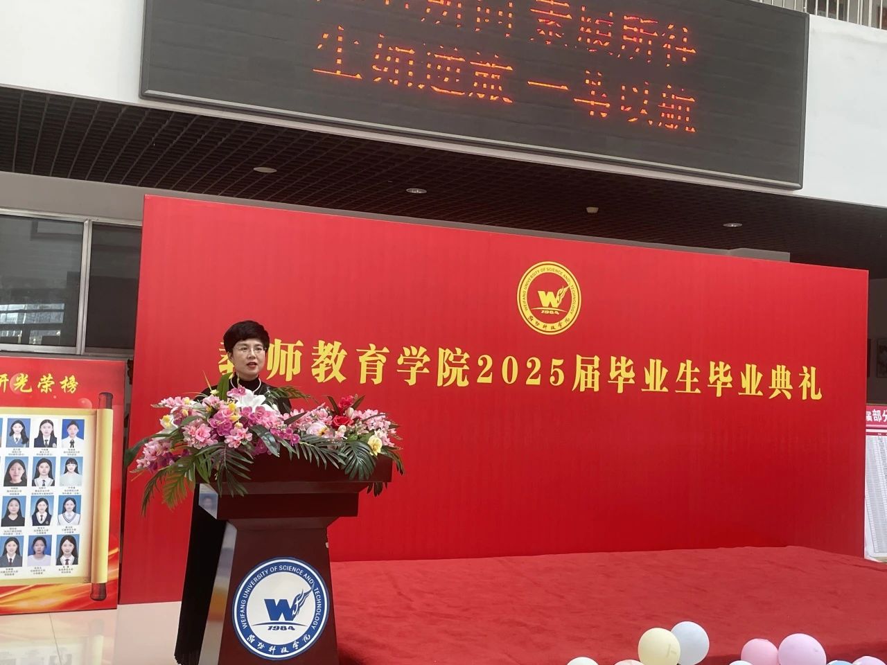 随后,唐艳平院长走上台,深情寄语。回顾往昔岁月,那些课堂上的求知、活动里的拼搏,被一一提及;期许未来征途,鼓励大家以勇气为帆、热爱为桨,字句间满是学院对毕业生的温暖与厚望。